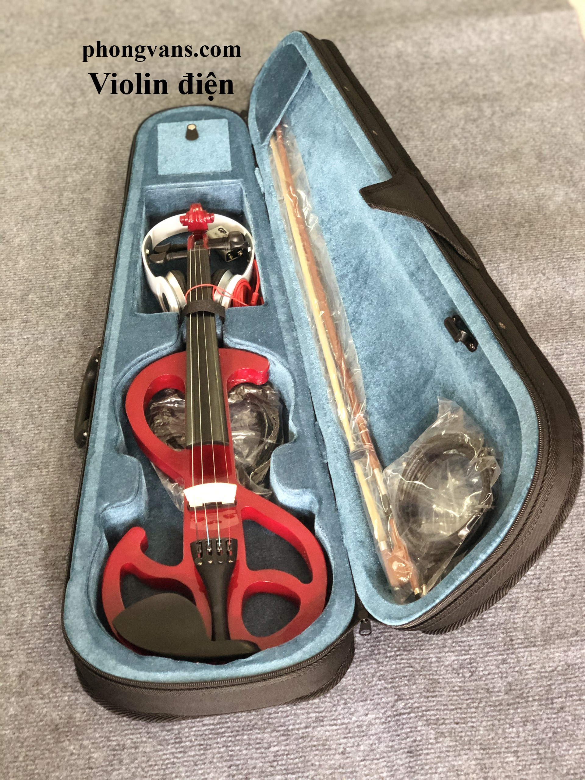 Cây violin điện màu đỏ do Phong Vân cung cấp là bộ sản phẩm đầy đủ bao gồm: 1 đàn, 1 vĩ kéo, 1 dây line, 1 tai nghe, 1 cục nhựa thông, 1 hộp đựng đàn. Thiết kế khá độc đáo từ cây violin điện màu đỏ đem đến cho người dùng ấn tượng khó phai. Đồng thời, đây còn là sản phẩm có chất lượng âm thanh đạt chuẩn với độ trong không khác gì các sản phẩm đàn cơ khác. Màu sắc nổi bật từ nhạc cụ được xem là điểm nhấn đáng chú ý; gây ấn tượng mạnh cho khách hàng.