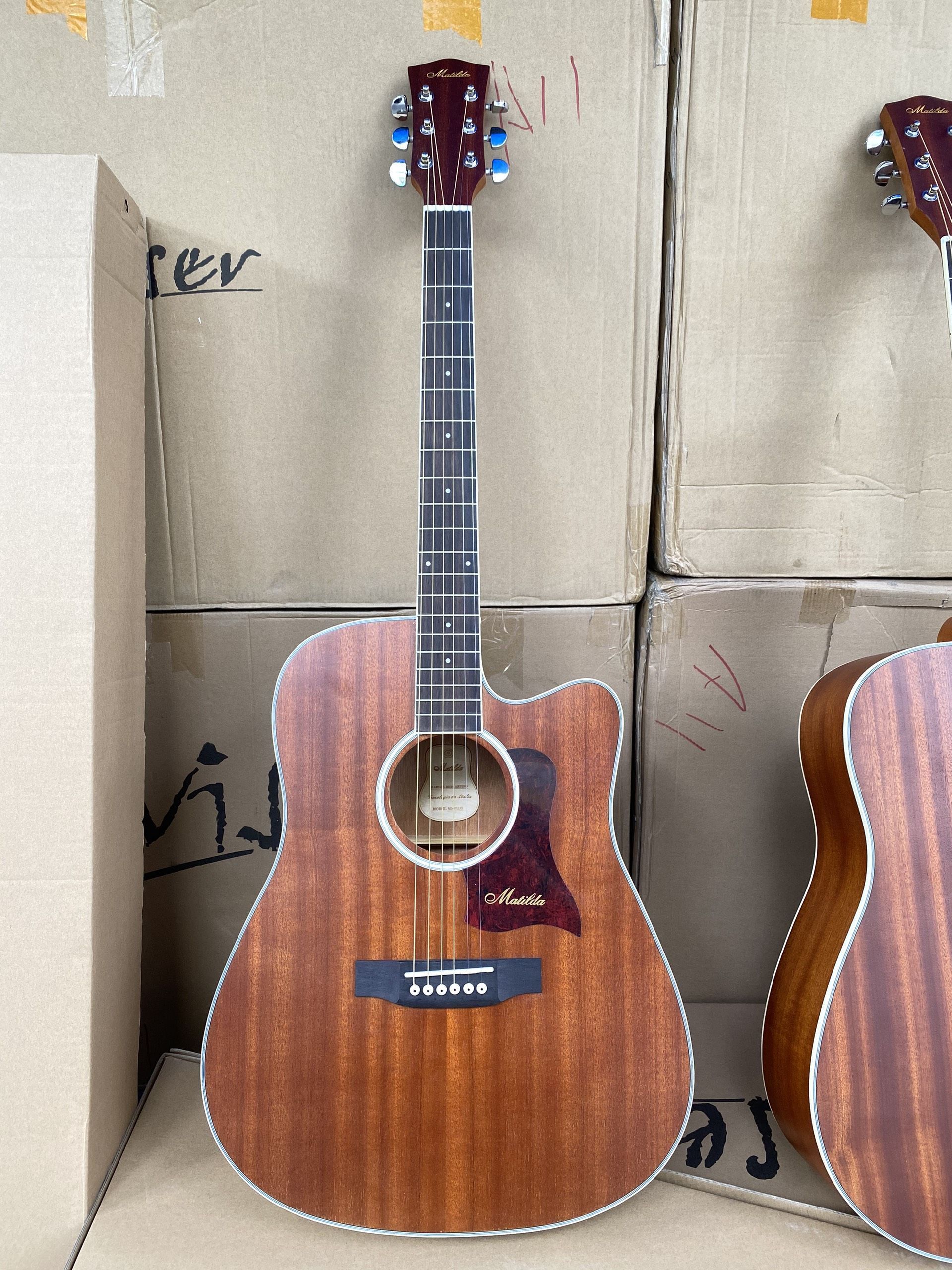 Guitar acoustic Matilda có model M5-Plus được làm từ gỗ mahogany, mặt top solid, ngựa đàn đánh vát, có khoá đúc in logo Matilda. Qúy khách yên tâm mua hàng chính hãng tại Phong Vân.