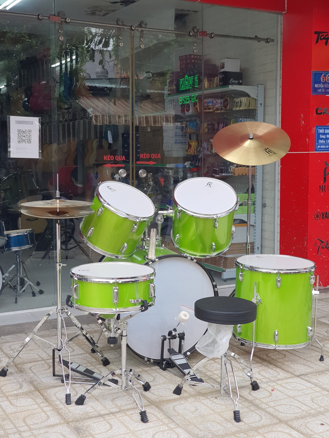 - Bộ trống: 5 trống, ghế, dùi, cymbal, pedal