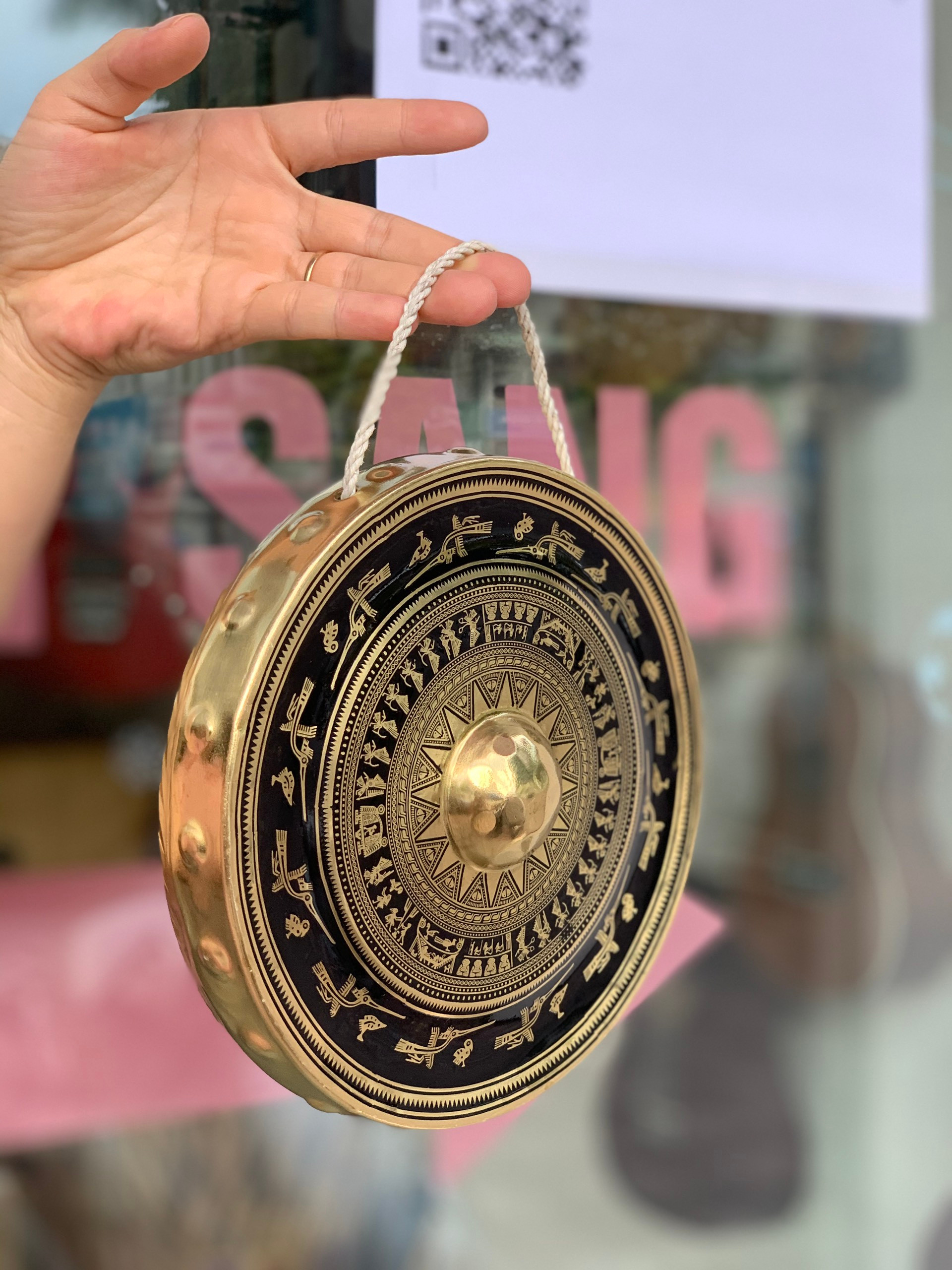 Chiêng đồng 20 cm hoa văn trống đồng mang nét đẹp cổ kính với những đường nét tinh xảo. Sản phẩm do Phong Vân thiết kế và sản xuất. Chiêng đồng 20cm không chỉ được sử dụng làm nhạc cụ mà còn được dùng cho trang trí, quà tặng. Tham khảo sản phẩm chiêng đồng 20cm tại Phong Vân qua những hình ảnh sau đây nhé.