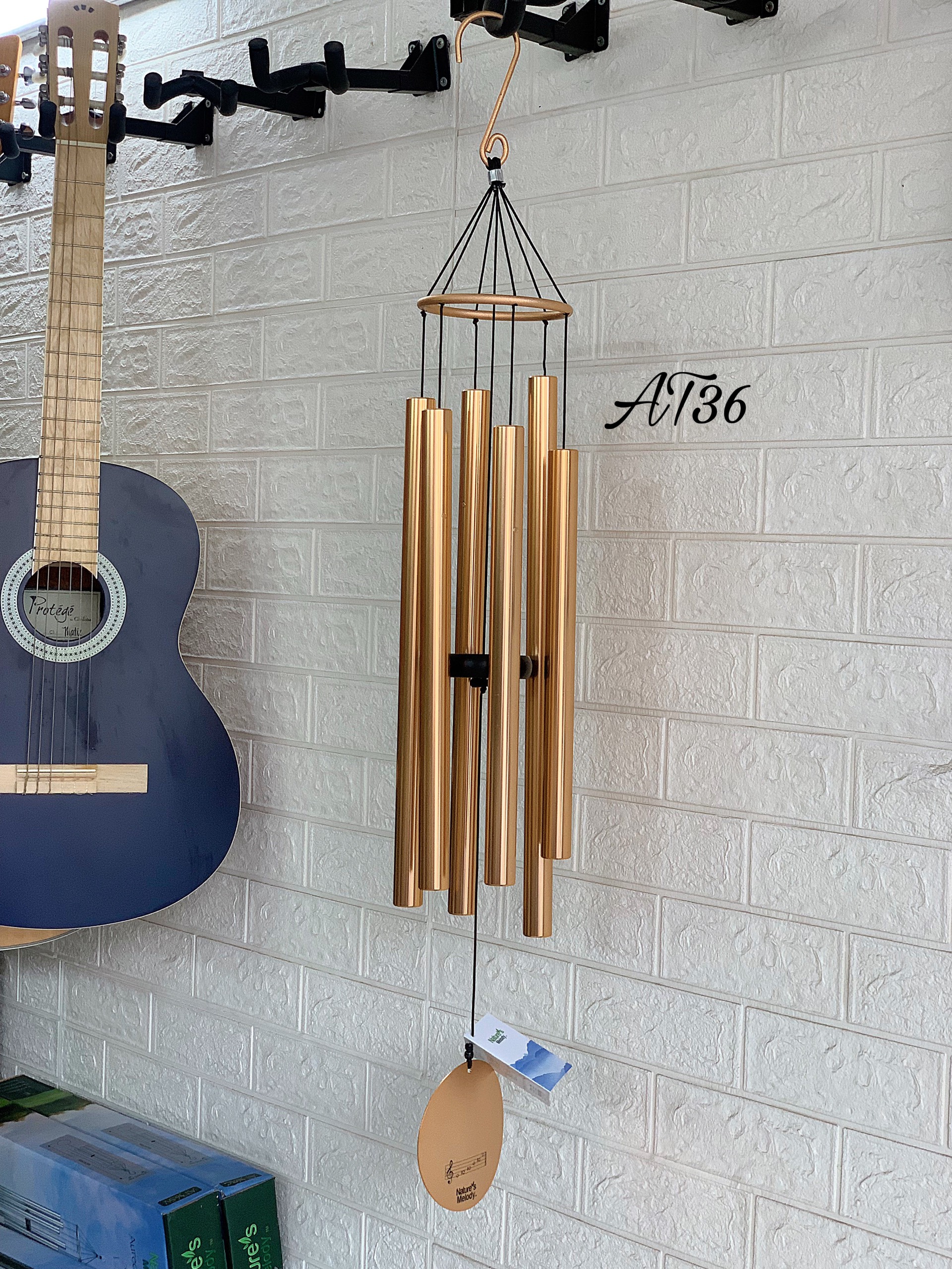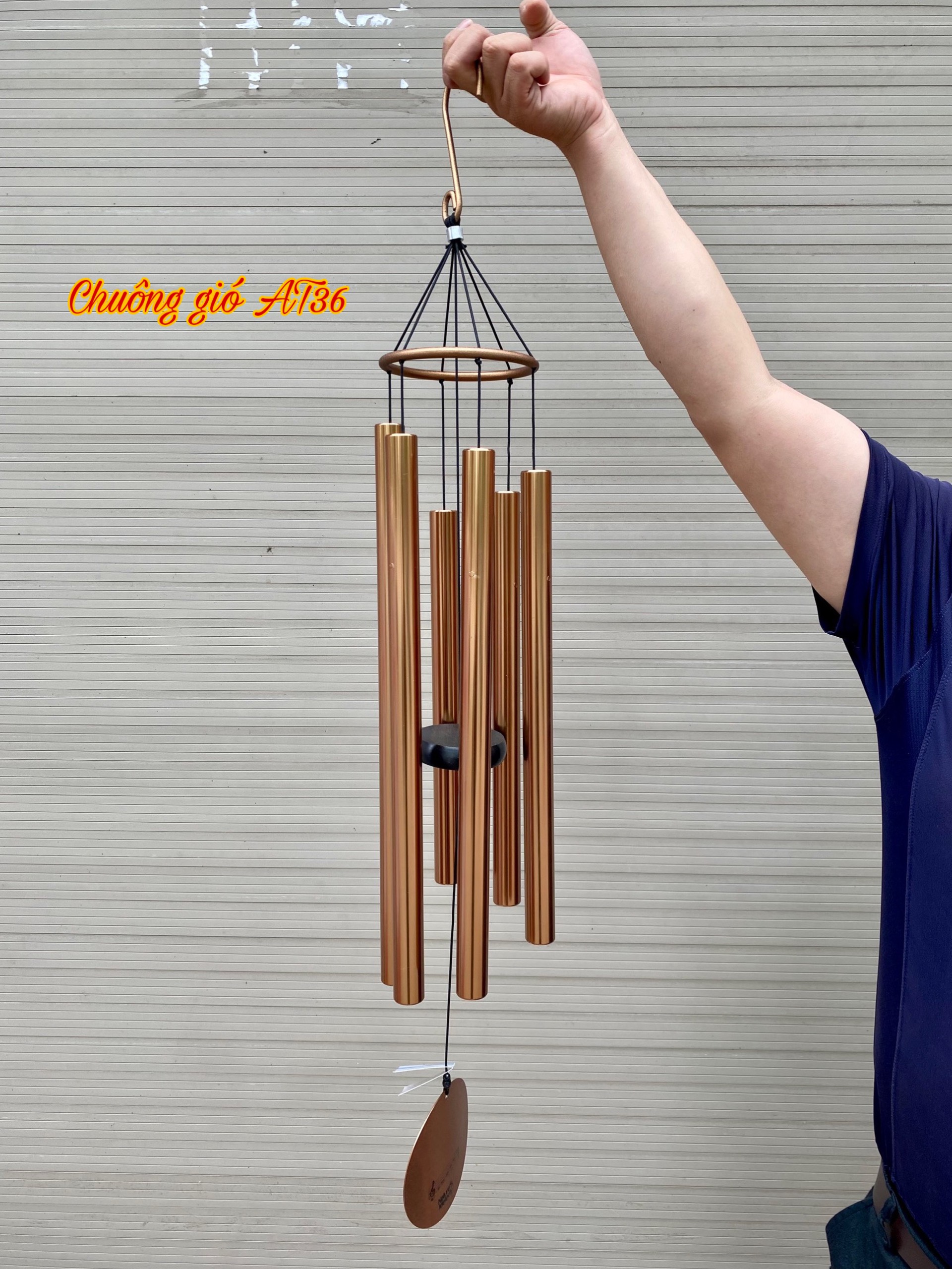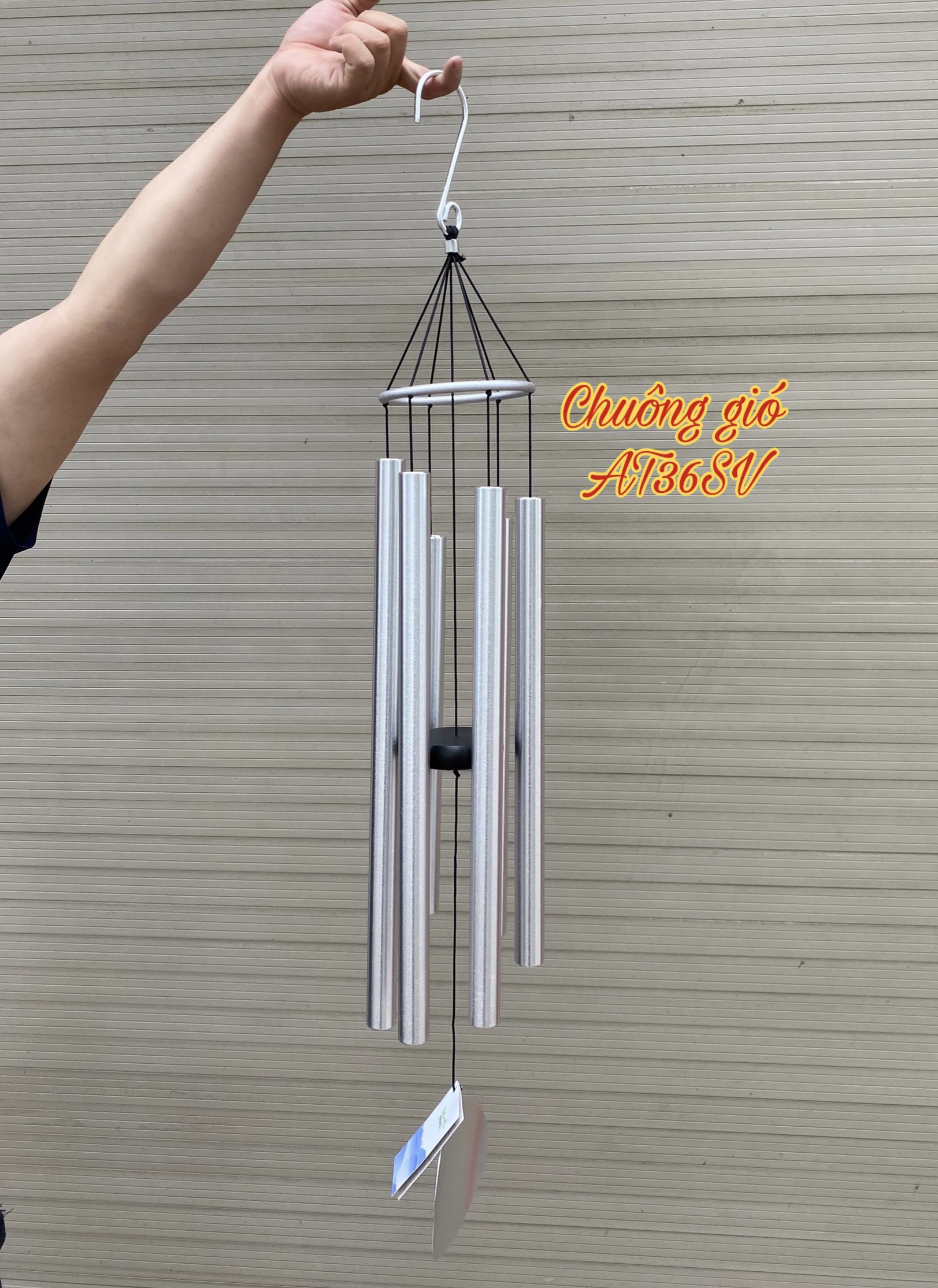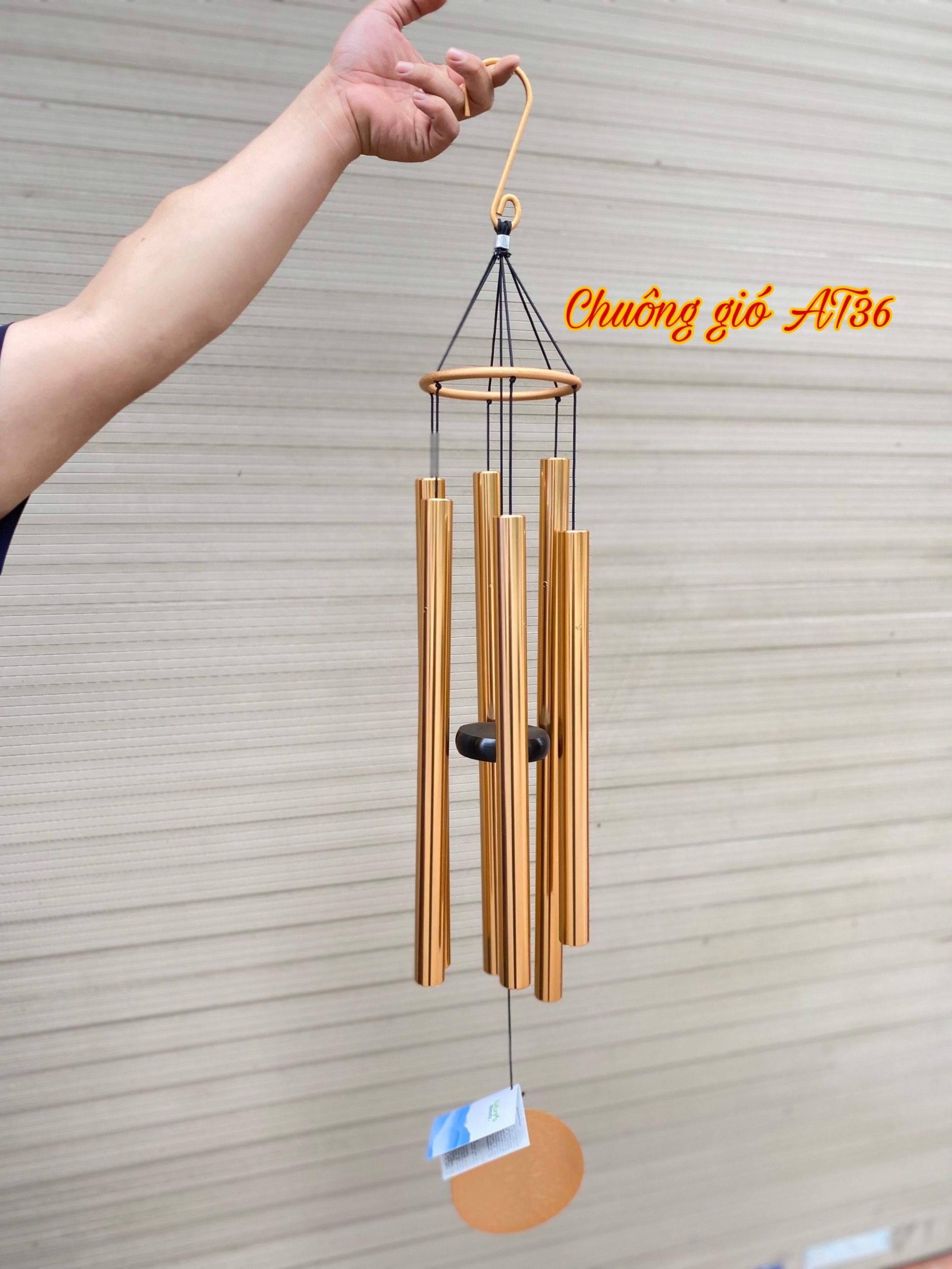 Phong Vân chuyên nhập khẩu và phân phối các mẫu chuông gió kim loại phong thủy; đa dạng mẫu và kích thước khác nhau; với chất lượng tốt và giá cả hợp lý. Chuông gió kim loại 6 ống AT36 với kích thước lớn được nhiều khách hàng sử dụng; có âm thanh vang lớn và chất liệu bền.
