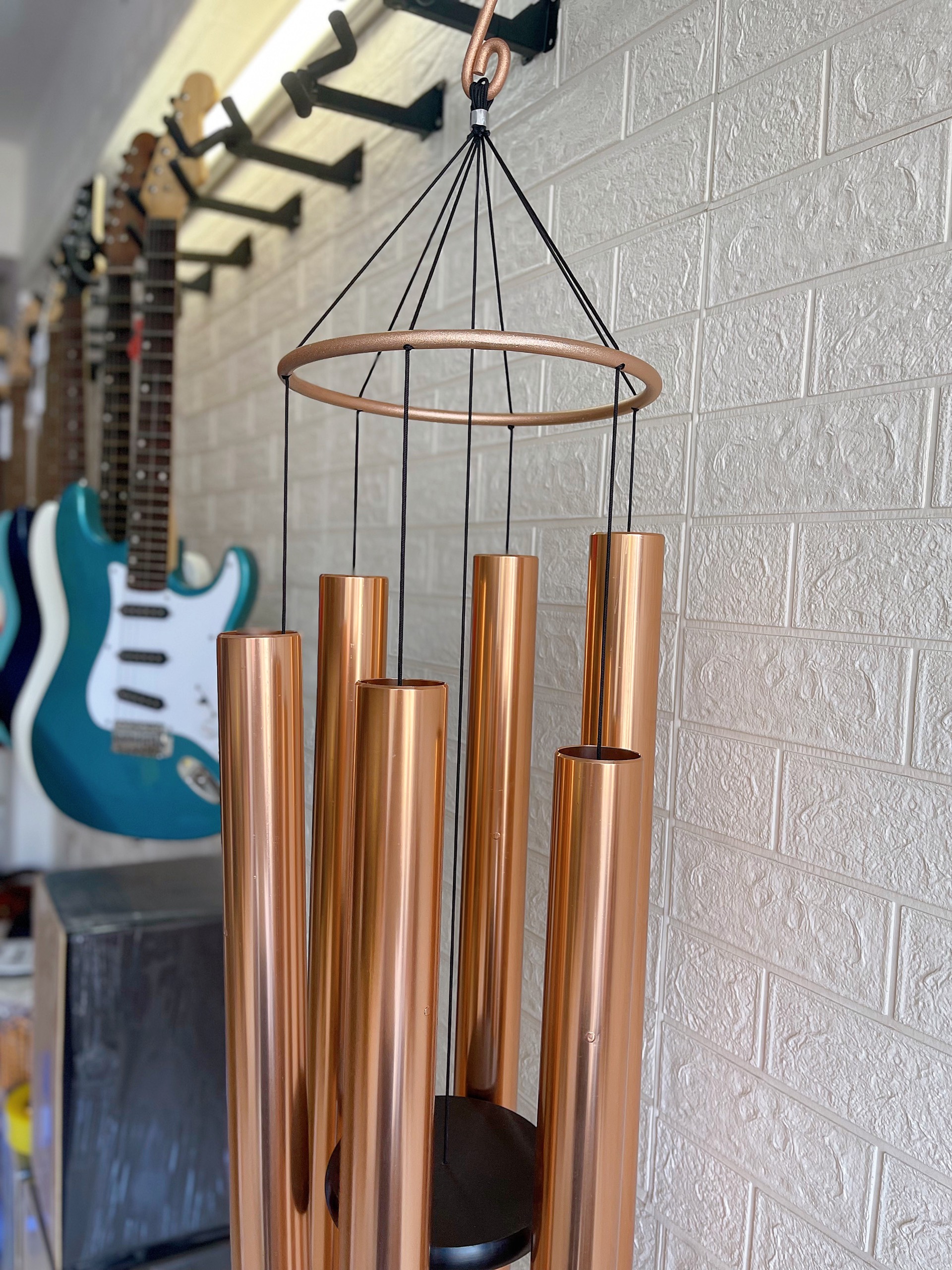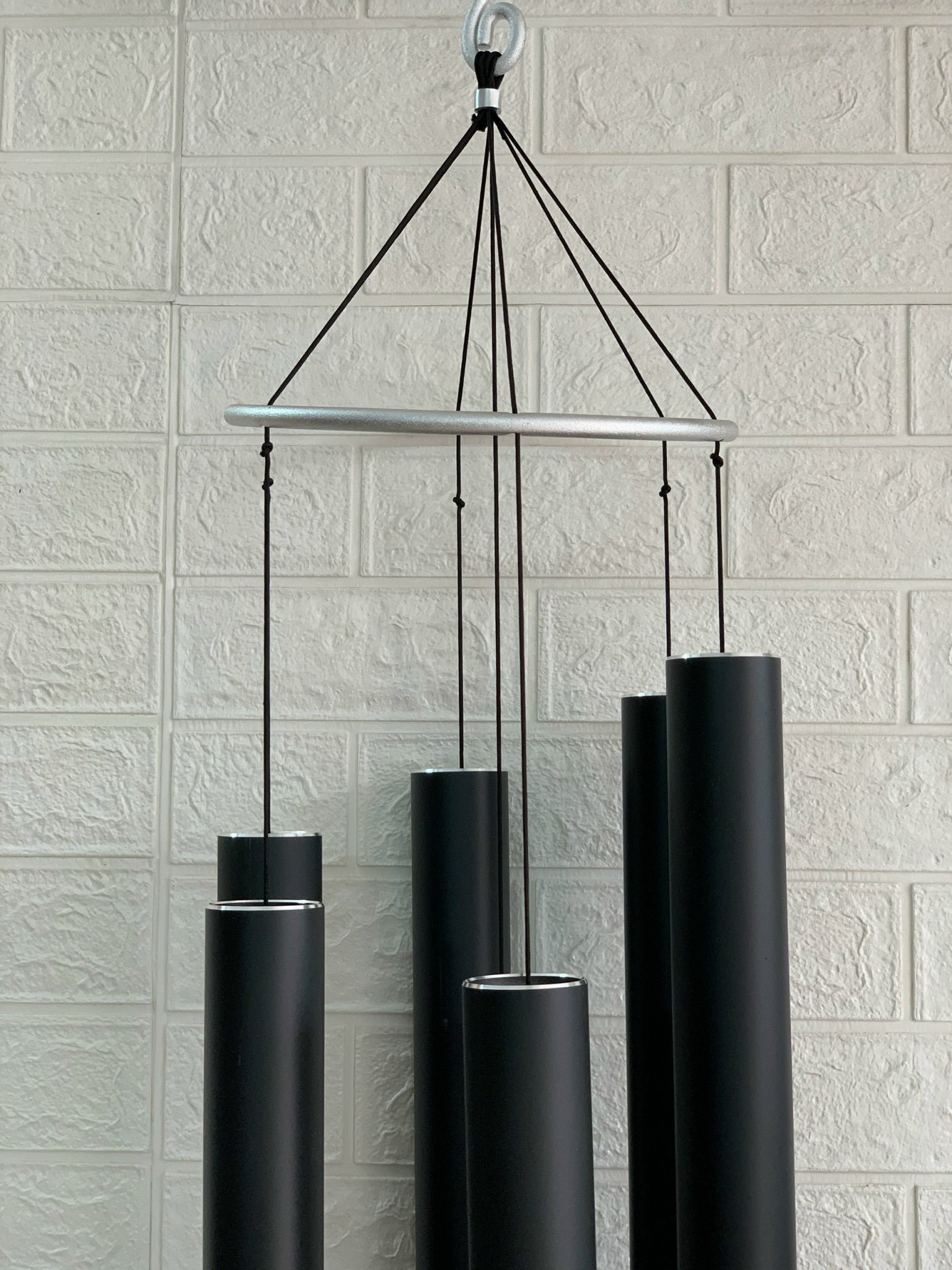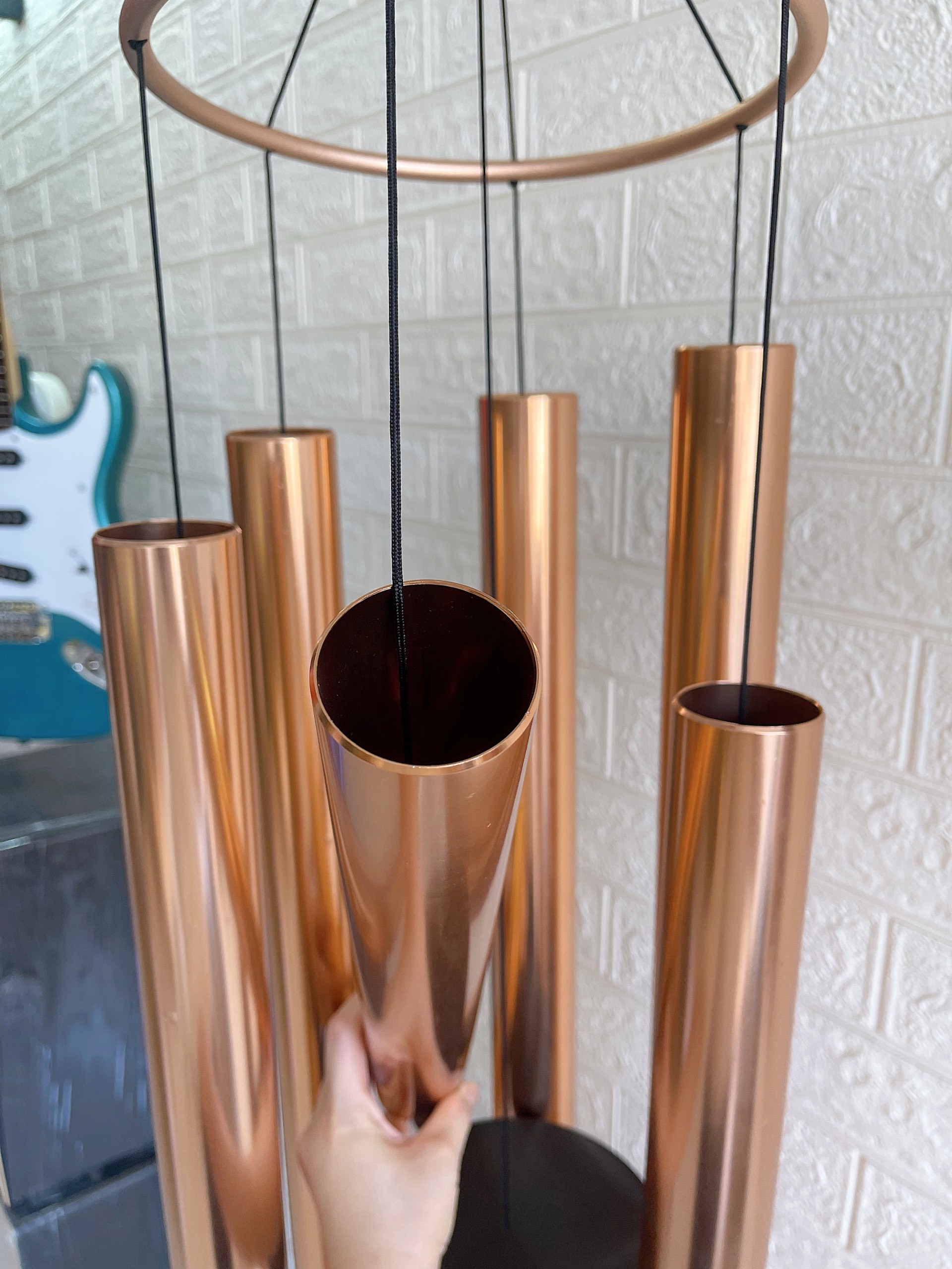 Với thiết kế 6 ống lớn và kích thước tổng thể chiều dài cả chuông 165cm. Kích thước ống: chiều dài ống dài nhất 68cm, ống dài nhất 97cm, đường kính ống 5cm. Chuông được thiết kế và gia công chắc chắn, đẹp mắt và có tuổi thọ sử dụng lâu dài.