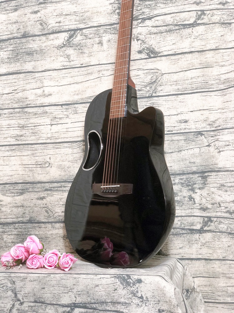 Điểm nhấn của guitar acoustic này chính là ở thiết kế. Mà nổi bật nhất là nằm ở mặt đàn khoét lỗ tạo nên điểm nhấn độc đáo; cùng với thiết kế dáng đàn kết hợp hài hòa với nhau.