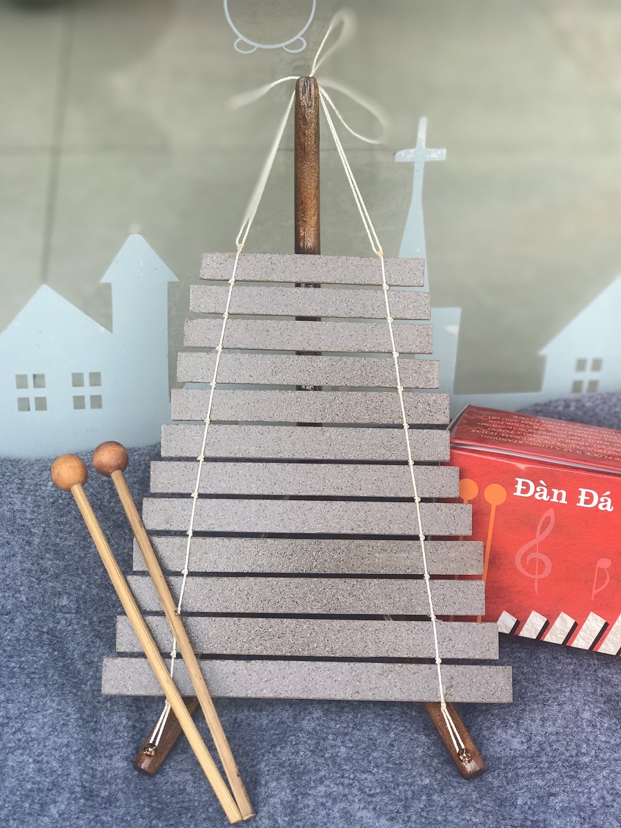 Đàn đá & T rưng mini có 12 thanh và ống ghép lại từ nốt Đô đến nốt son thứ.