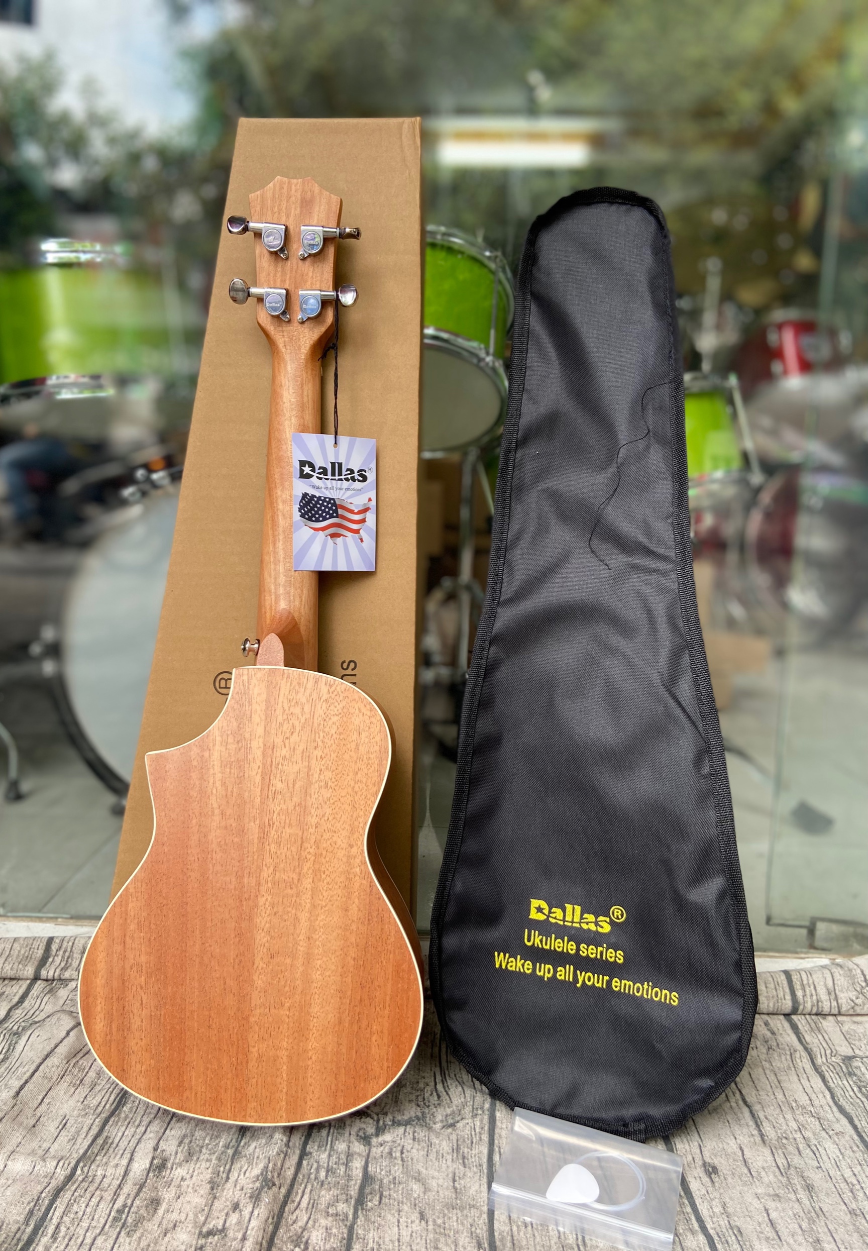 - Điều đặc biệt; ukulele Dallas chính hãng còn dành tặng bạn nguyên set phụ kiện: bao chính hãng; phím gảy và dây sơ cua.