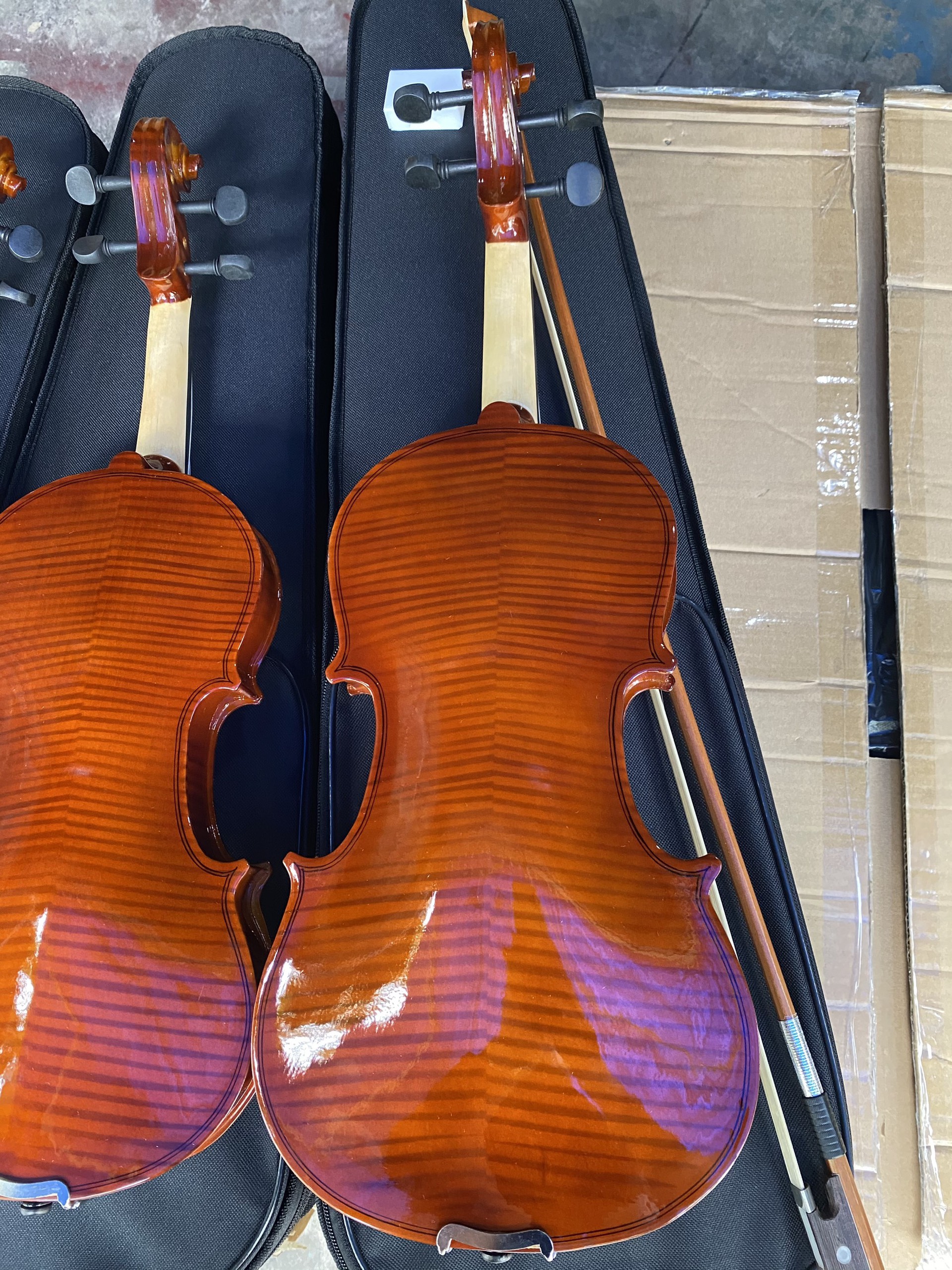Bộ đàn Vĩ cầm gỗ 1 cây đàn, 1 hộp đàn, 1 vĩ kéo, 1 cục nhựa thông.
