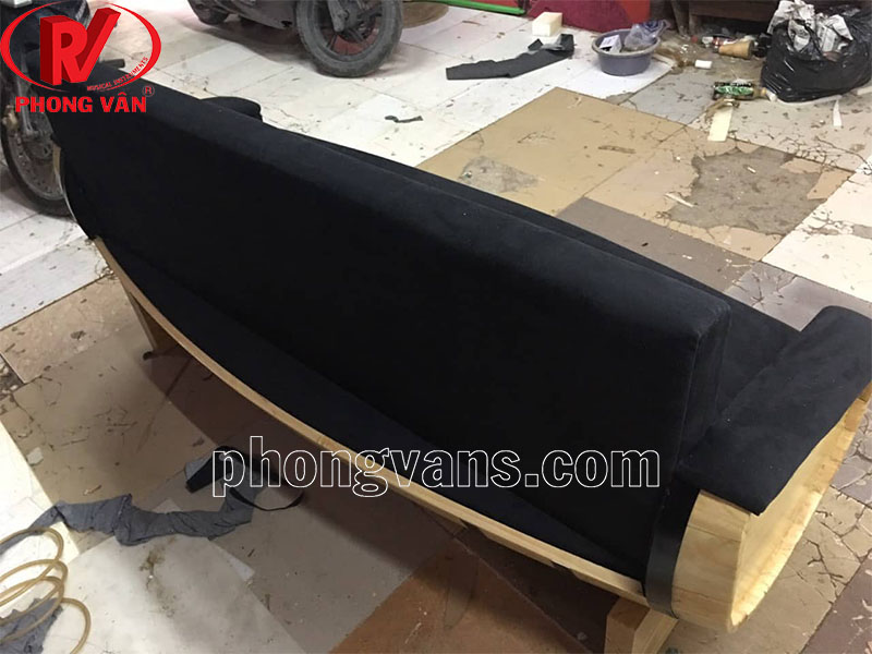 - Chất liệu: Gỗ thông, bọc vải nhung. Đệm dài 40 cm.