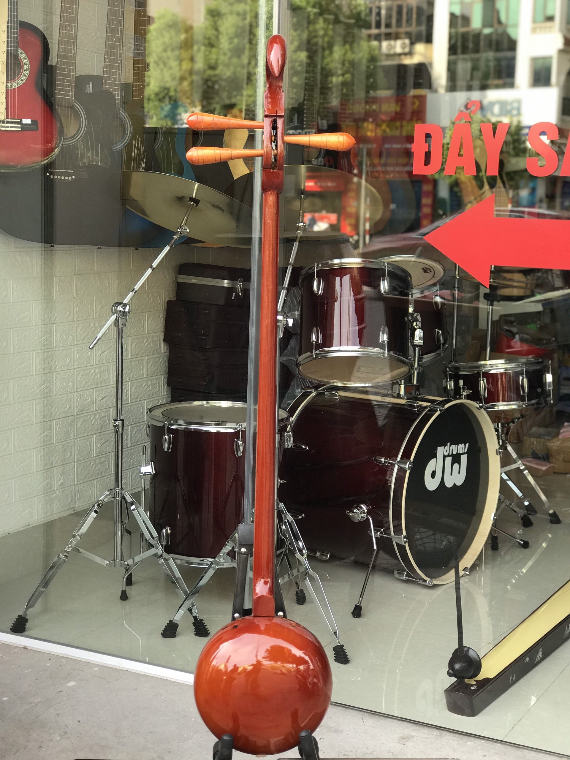 Chất liệu: Thùng đàn bằng quả bầu, hoặc quả dừa khô, cần đàn bằng gỗ.