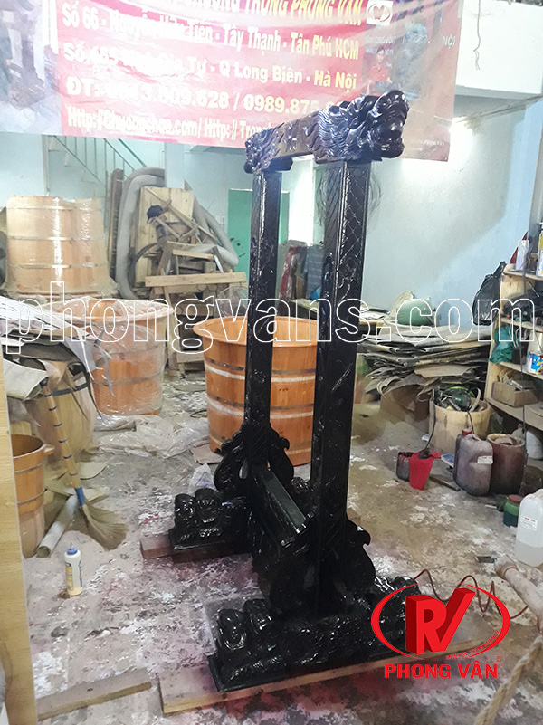 Giá treo chuông đồng bằng gỗ tại Phong Vân được điêu khắc với nhiều họa tiết hình rồng phượng tinh xảo, tỉ mỉ. Đây chắc chắn sẽ là một sản phẩm làm hài lòng quý khách hàng. Giá treo chuông đồng là một vật phẩm không thể thiếu ở hầu hết các ngôi chùa tại Việt Nam.