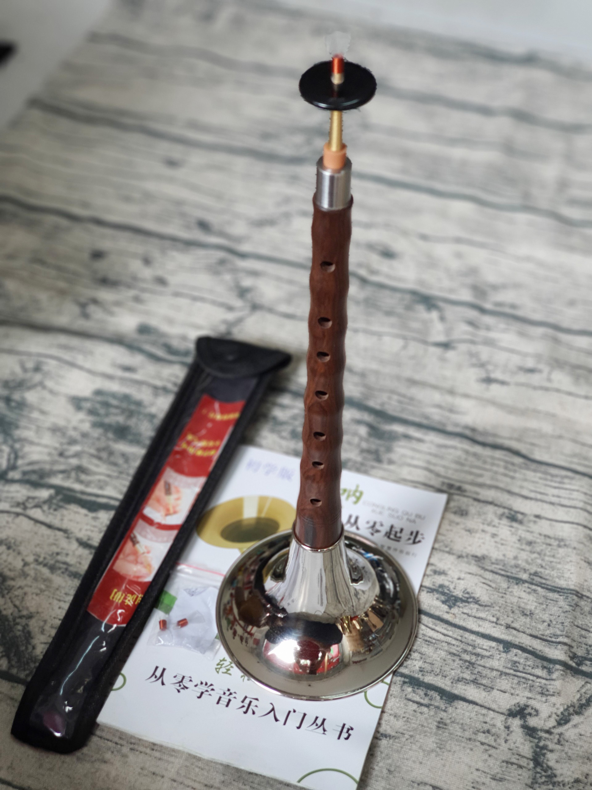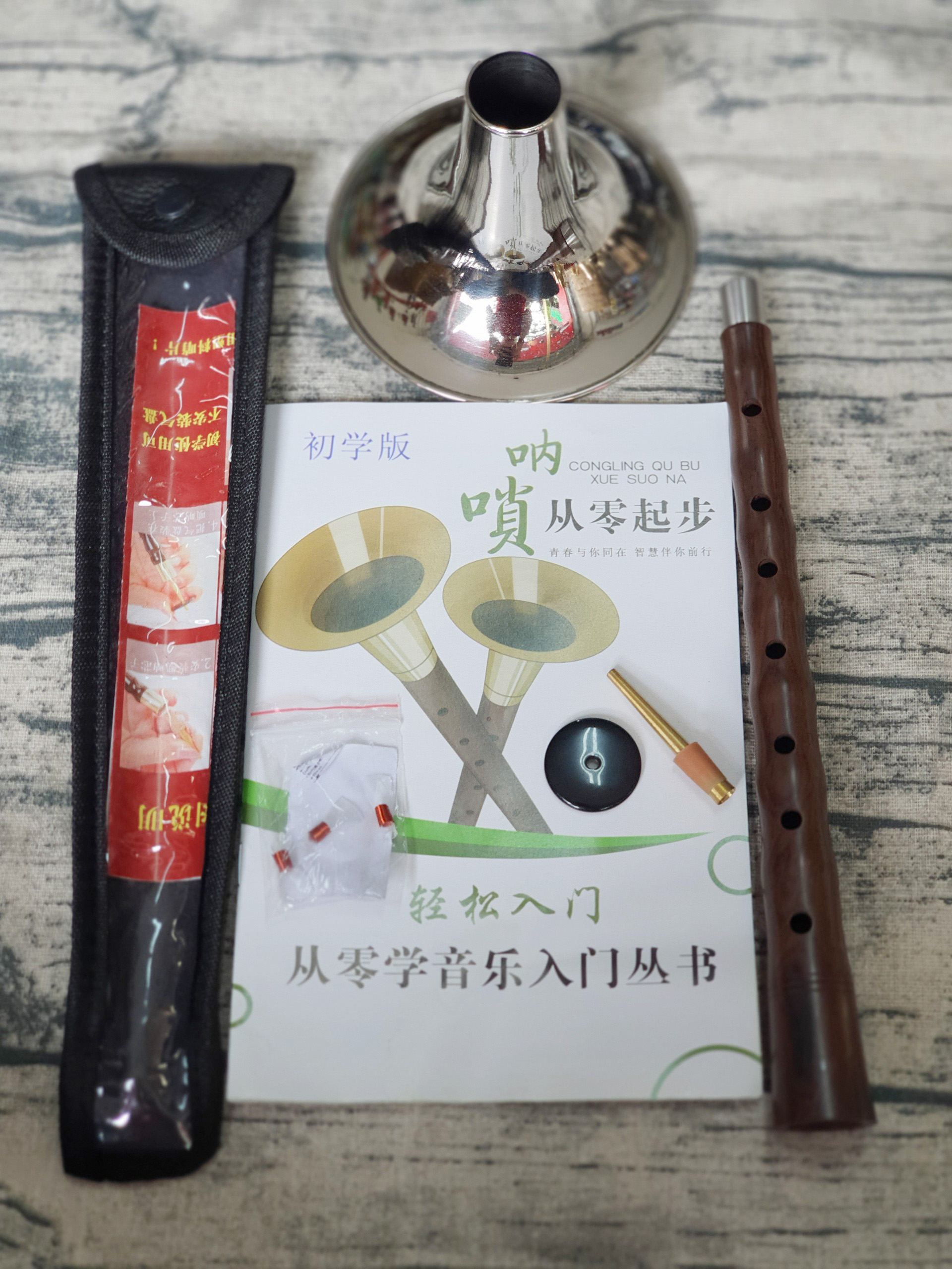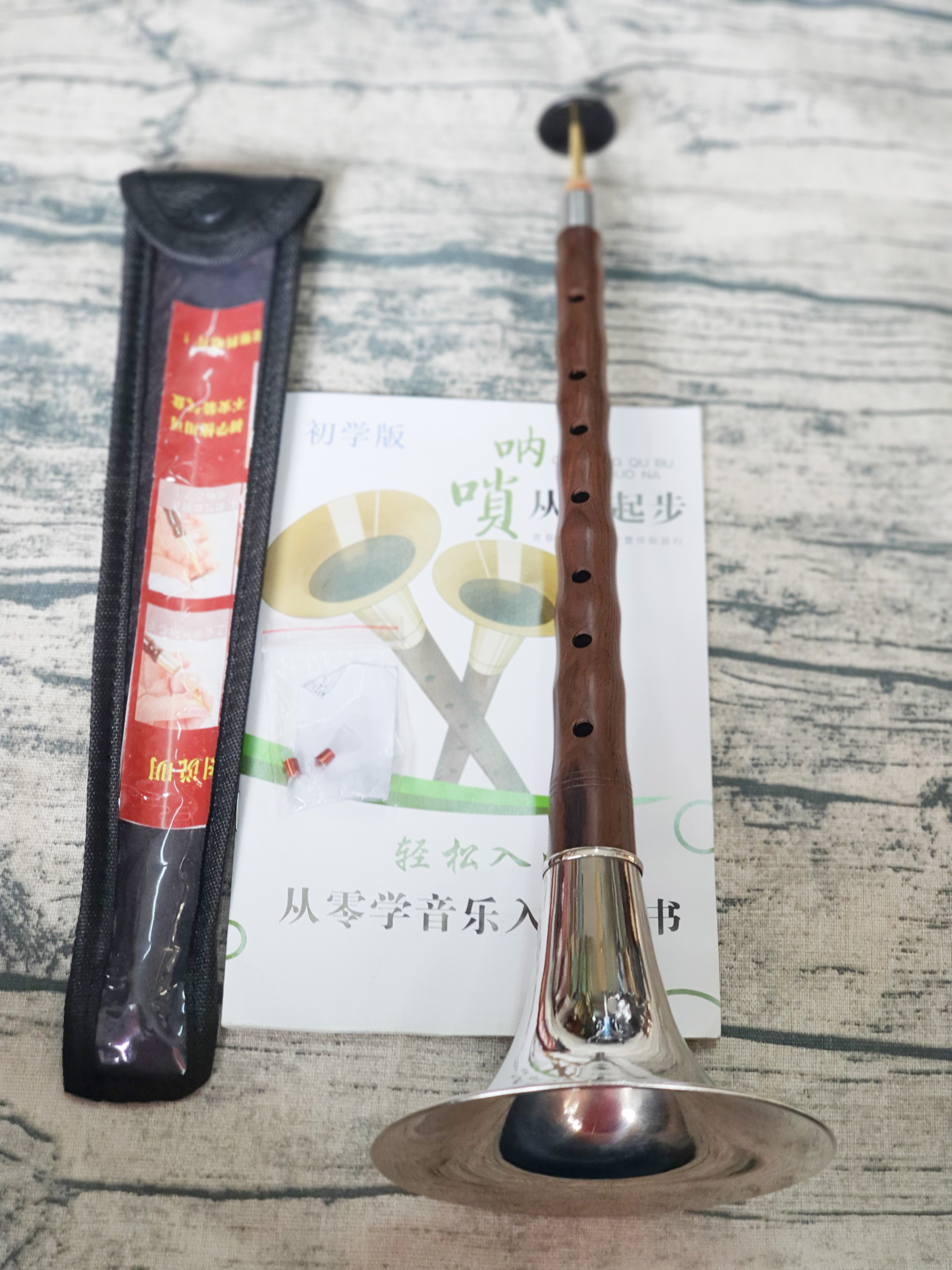 - Bộ gồm: thân kèn, túi đựng, loa kèn, 1 thắng kèn, 3 dăm kèn