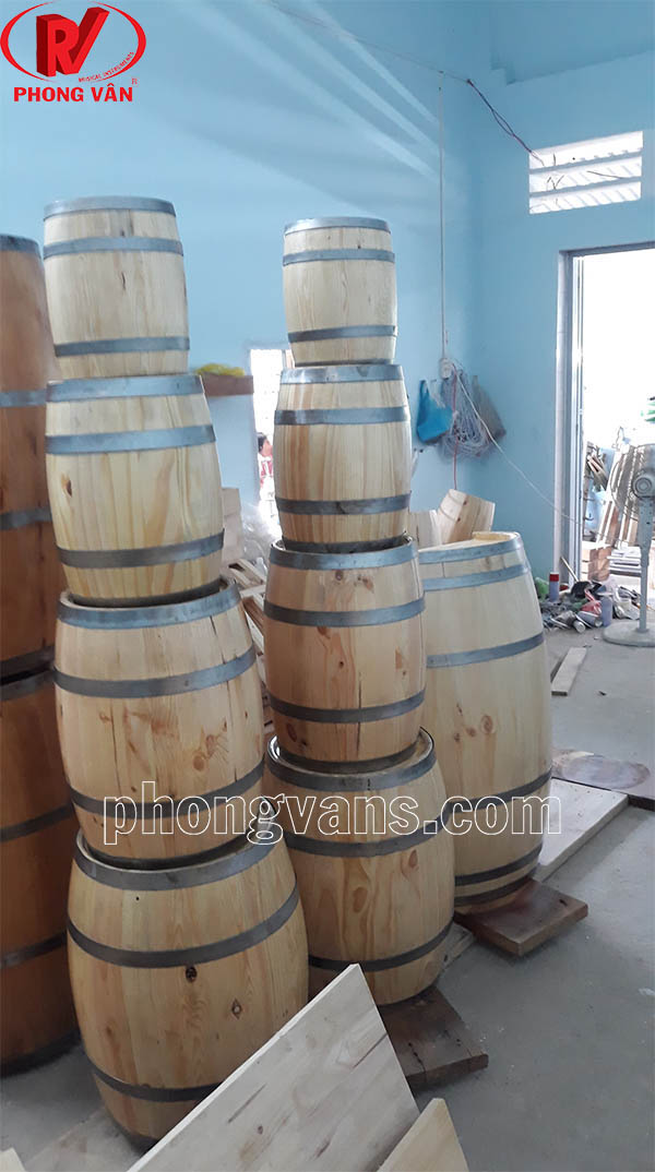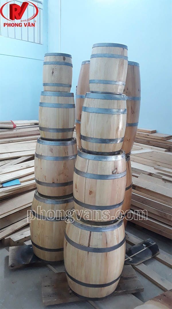Cơ sở Phong Vân nơi sản xuất và cung cấp các loại thùng gỗ rượu vang trang trí chất lượng với nhiều mẫu mã đẹp và sang trọng. Các sản phẩm của chúng tôi có nhiều kích thước khác nhau cho bạn lựa chọn như: 30cm, 40cm, 50cm, 60cm và 1mét . Thùng được ghép từ những thanh gỗ thông đã qua công nghệ sấy khô hiện đại. Đồng thời, thùng được niền chắn chắc bằng những vòng thép màu sẫm sáng bóng. Nhờ vậy mà làm nổi bật màu sắc, hoa văn đặc sắc của gỗ thông từ đó tăng tính thẩm mỹ của một chiếc thùng gỗ rượu vang trang trí.