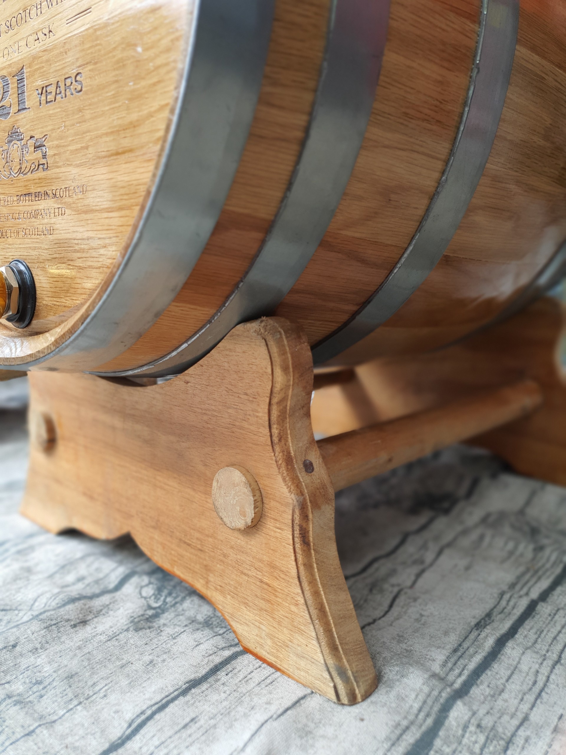 Bô gồm: trống rượu, vòi nhập khẩu cao cấp, chân giá.
