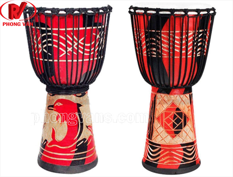 Trống djembe có hình dạng giống như một chiếc ly với mặt trống thường bằng da. Trống rộng 27cm và cao 60cm và có nhiều màu sắc. Sản phẩm này đặc biệt nhất là những hoa văn trang trí lên sản phẩm. Các hoa văn luôn làm nổi bật và thể hiện rõ nét sự tài hoa của người thợ cũng như nét nghệ thuật của trống djembe. Xuất xứ từ Indonesia, sản phẩm được làm từ gỗ gụ chắc chắn. Điều này giúp đảm bảo sản phẩm có độ bền tốt hơn.
