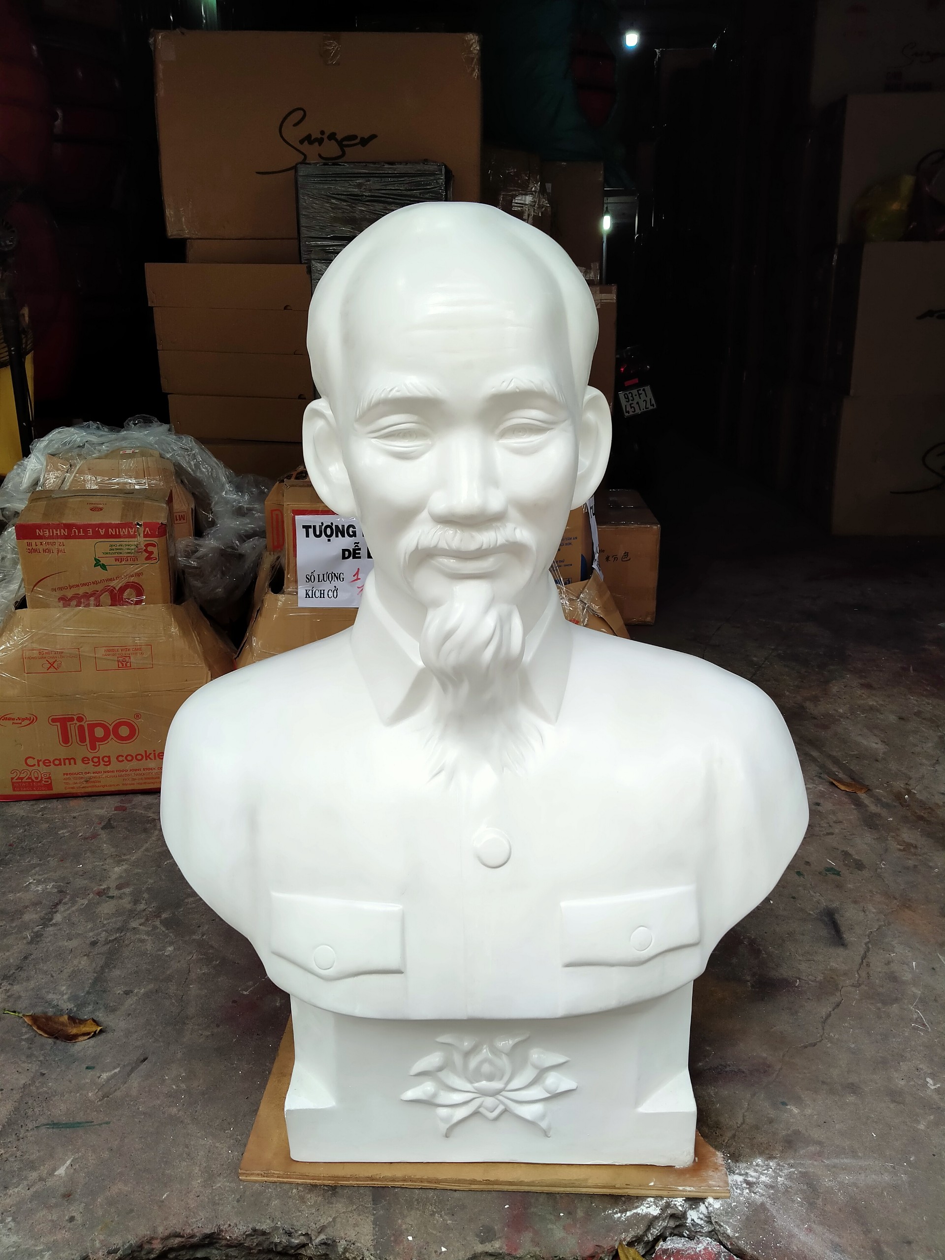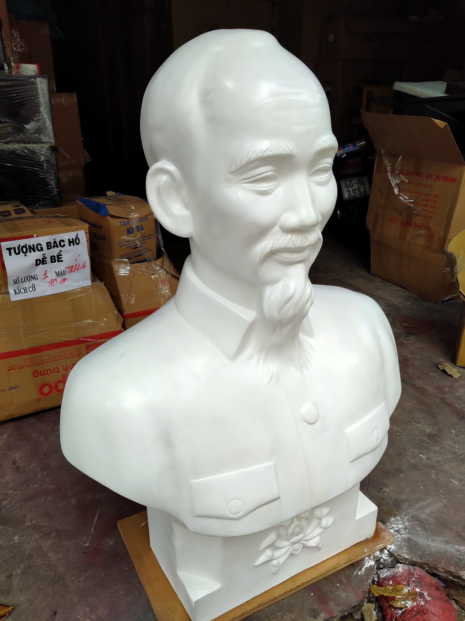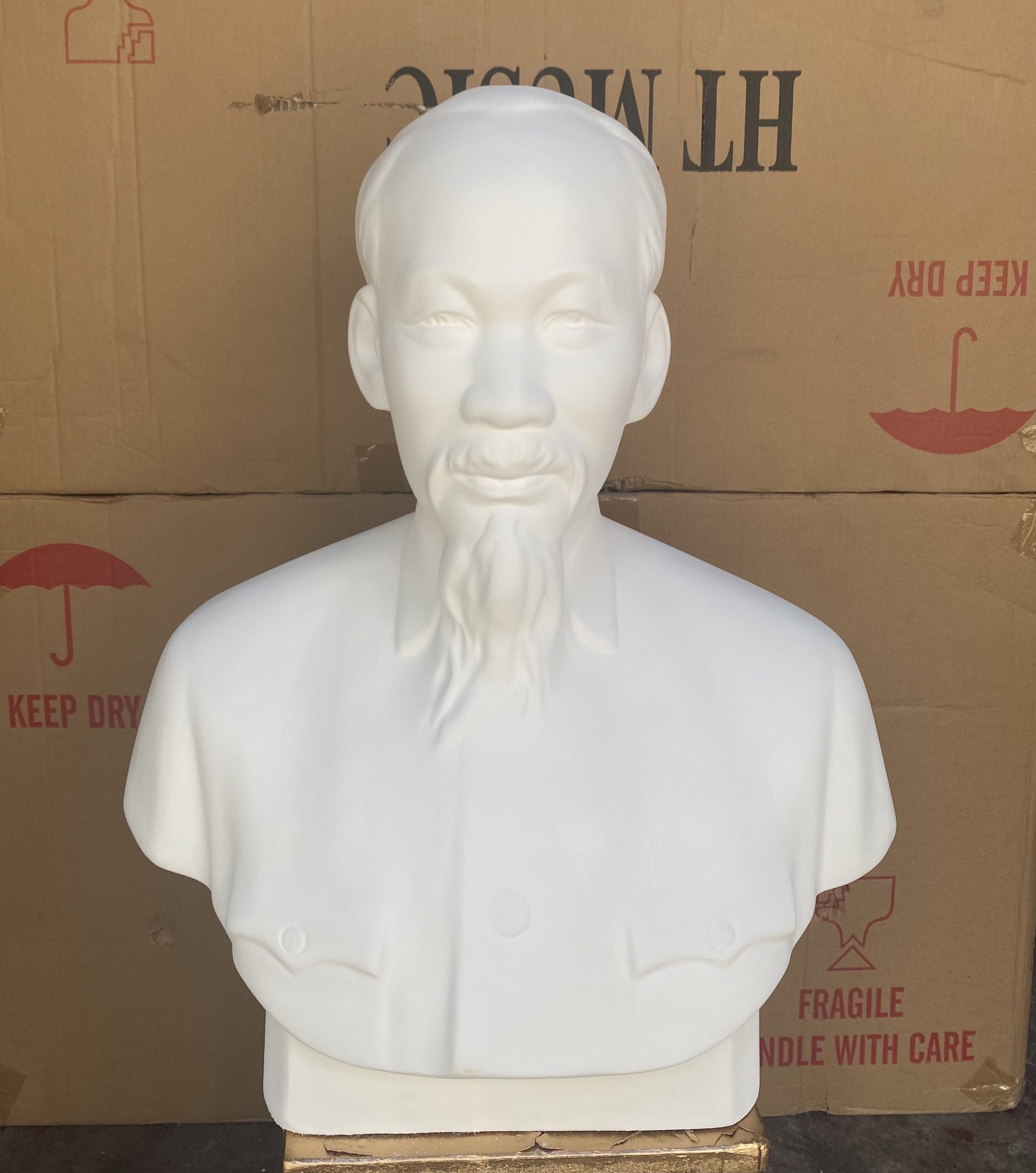 Tượng bán thân Bác Hồ được đúc từ chất liệu thạch cao và được sản xuất bởi Phong Vân. Với kích thước và khuôn mẫu đạt chuẩn; tượng đem đến hình dáng mô phỏng chân thực nhất về vị lãnh tụ kính yêu của dân tộc. Tượng được đúc ngay ngắn với các chi tiết tỉ mỉ thể hiện sự trang nghiêm.